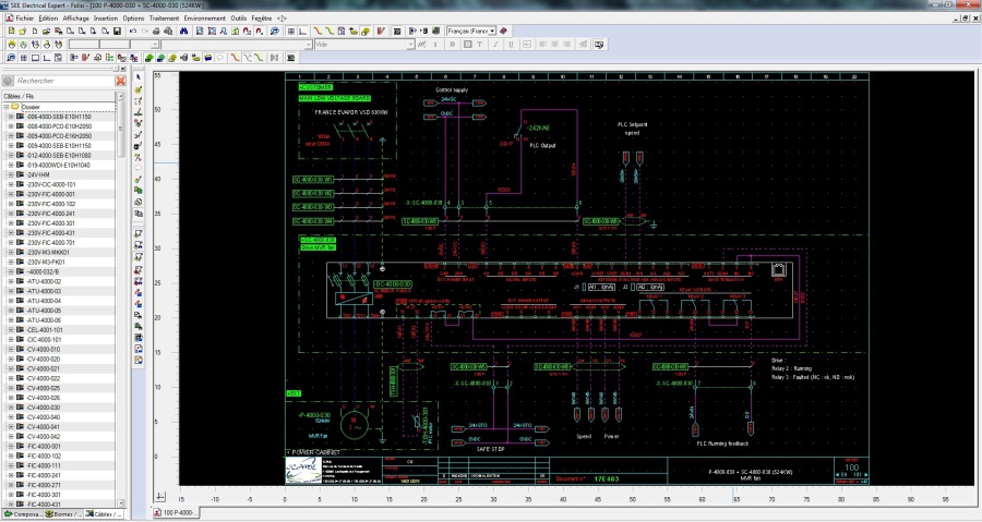 - des dossiers complets comprenant les schémas électriques réalisés informatiquement sous SEE Electrical Expert, Eplan ou Autocad,